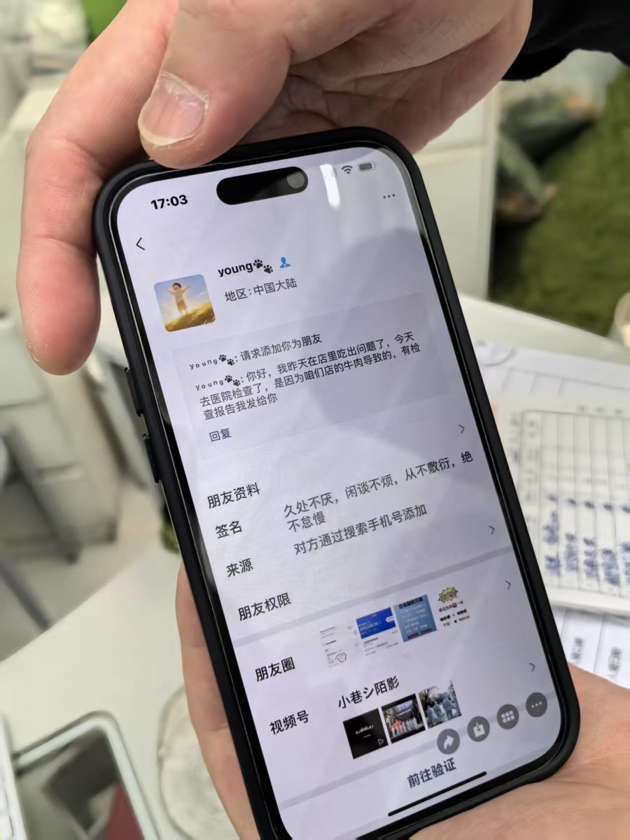杨某通过点评网站上刘店长预留的手机号码,主动加了他的微信,提出索赔。